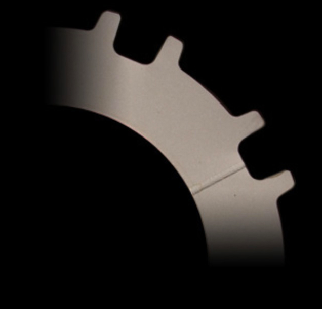 MID PLATE: With a slit on the friction surface. The cooling effect and the segmentation of the friction surface achieve uniformity and contribute to stable torque transmission.